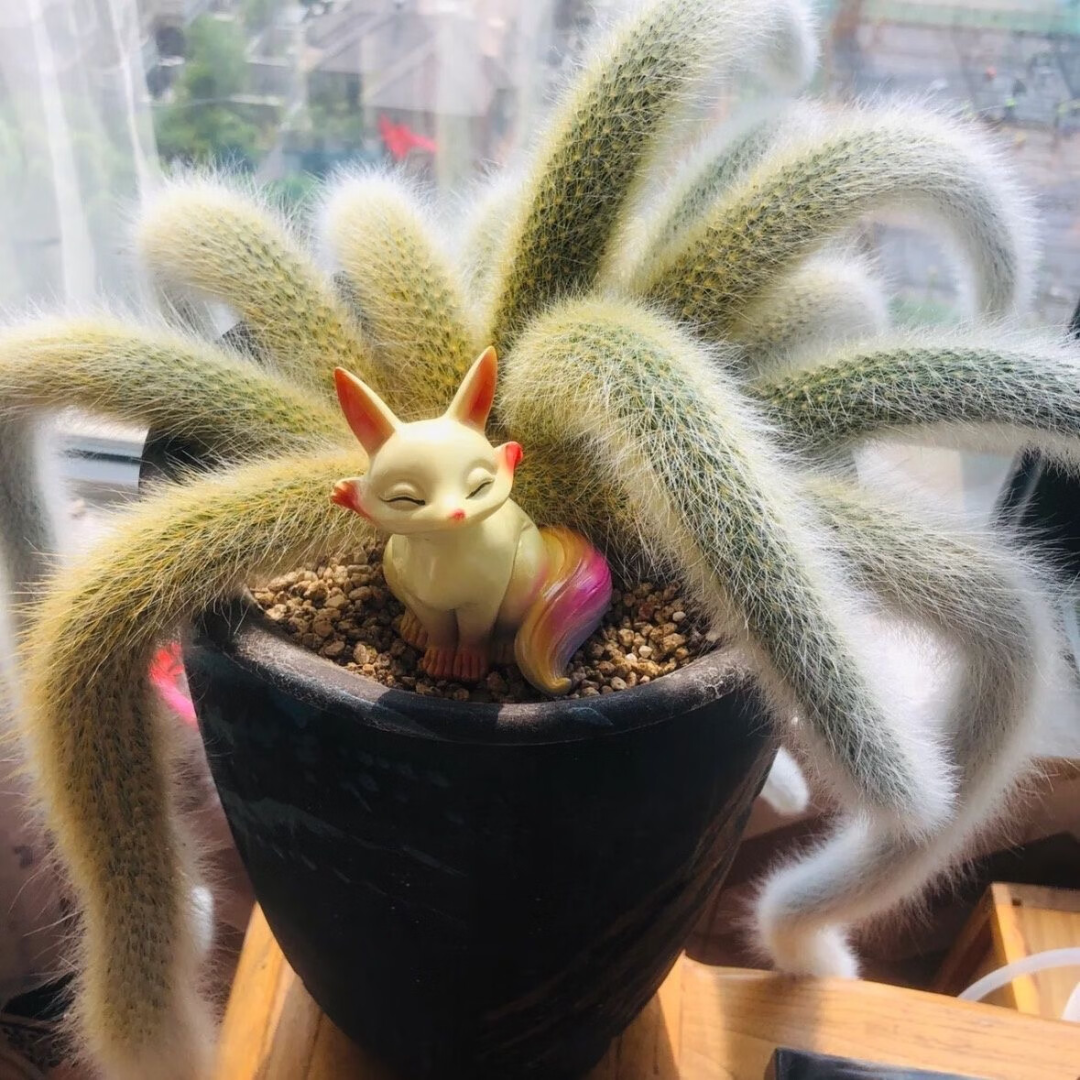 The monkey tail column is also a cactaceae plant, which is somewhat similar to the rat tail arrow in the article, but The monkey tail pillar has dense white hair, which hangs down like a monkey’s tail. But more flower lovers like to plant Put a white nine-tailed fox in the flowerpot of the monkey tail pillar, and then The monkey tail pillars behind the nine-tailed fox instantly transformed into fox tails, filled with immortal aura.