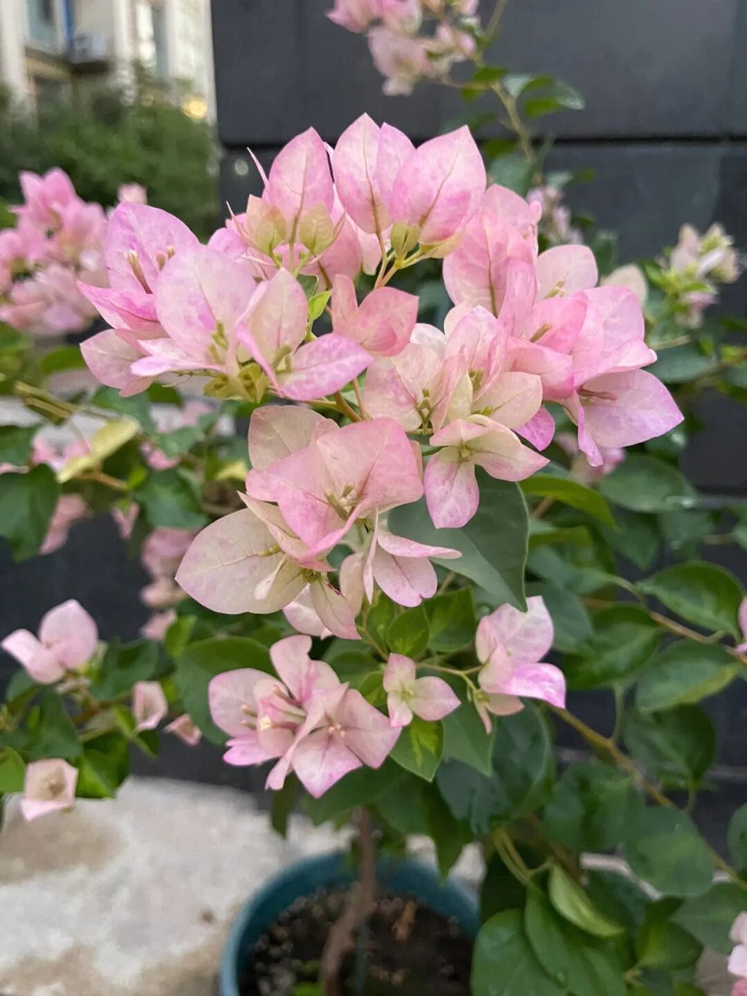 Kayata is a new bougainvillea. The summer flowers are light flesh color, and the autumn and winter flowers will be much darker. The color is obviously impressed by the environment. It is said that the dark flowers and light flowers are different from two flowers.