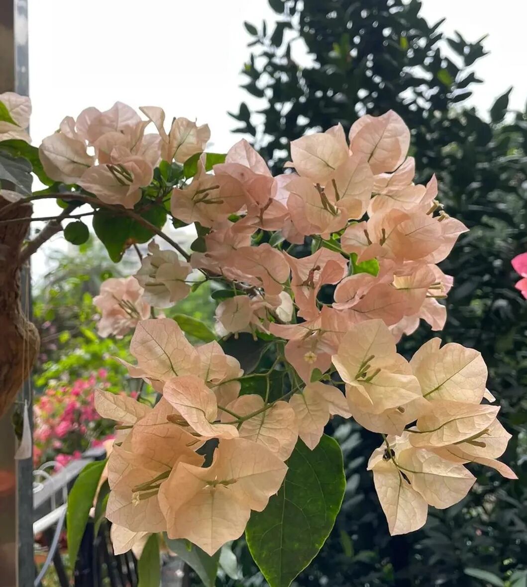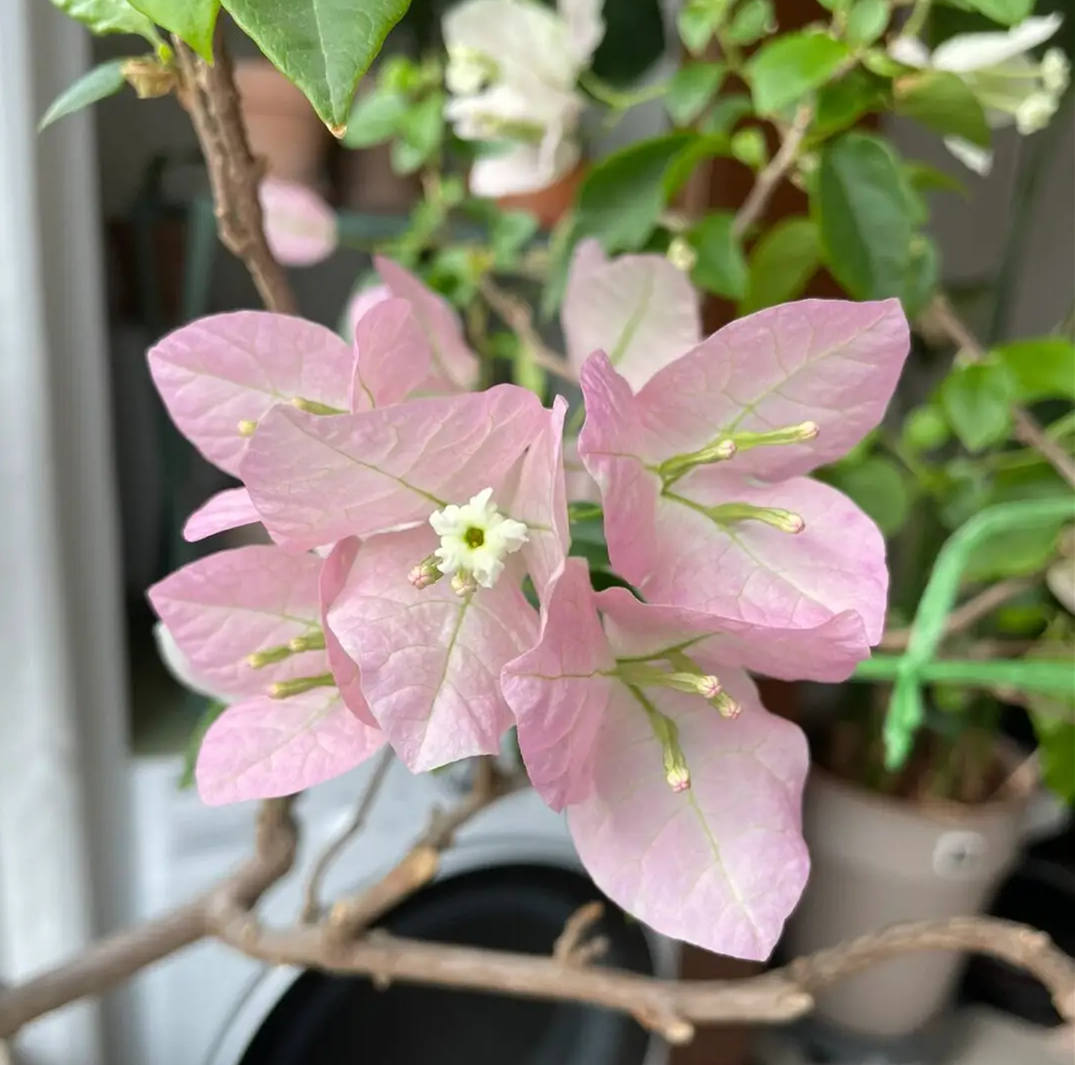 Apple blossom is a small bougainvillea variety, which is named after the color of bracts is similar to that of apple blossom. The flower color will wander between light pink and white due to the change of light and temperature, and it is pink and tender, which is very gentle.