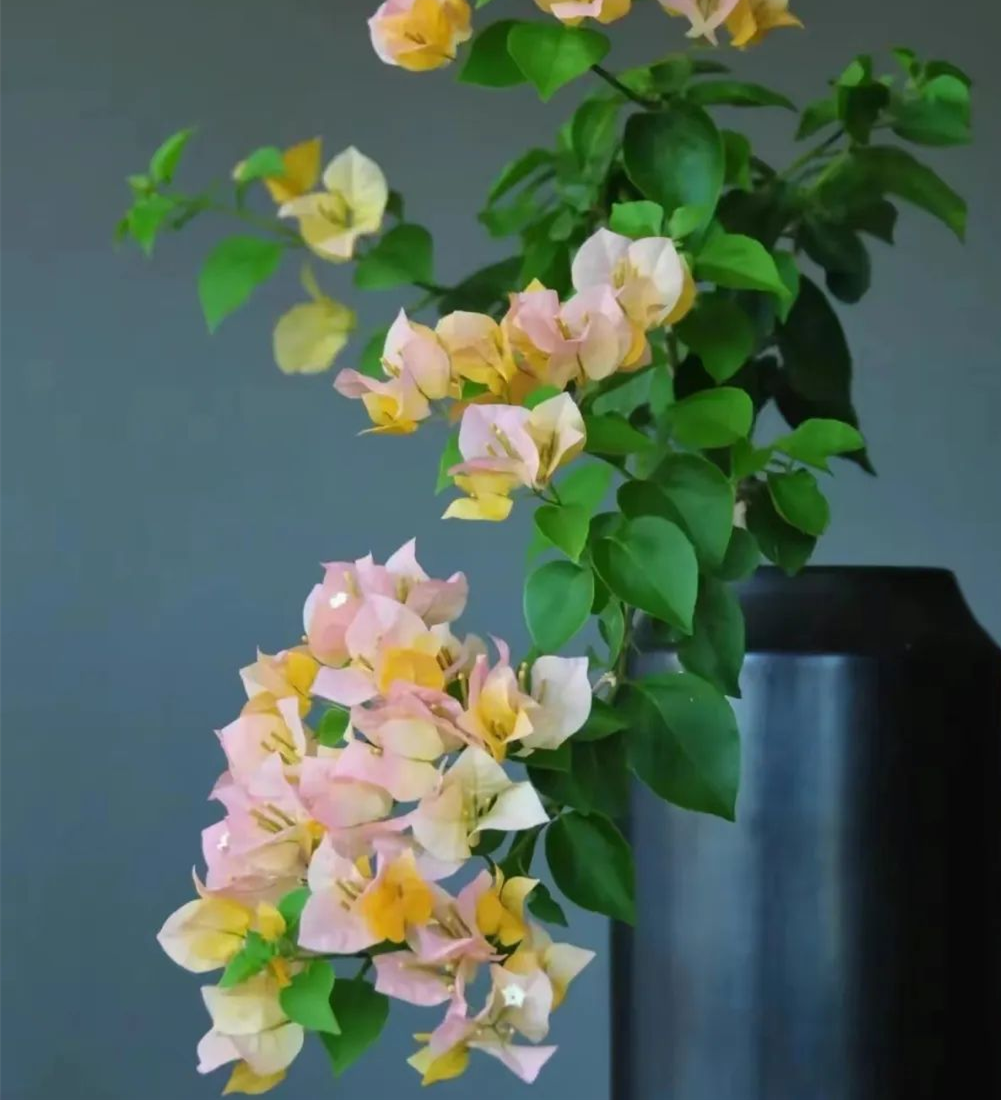 Suwana is a beautiful ceiling variety among yellow bougainvillea, and its branches are soft and easy to shape; The bracts are pure bright yellow, which gradually become lighter and transparent with full bloom, showing a light milky yellow, and sometimes a little light pink, which is fairy and warm.