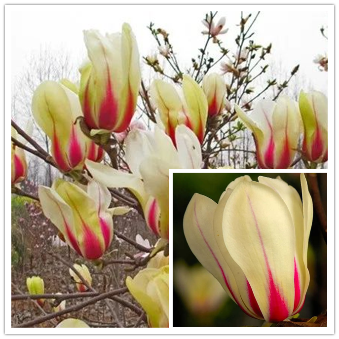 Magnolia “Sea of Life” plants are 6-7.5 m tall, and its flower color is a complex mixture of lavender with yellow, orange and green, which is colorful.