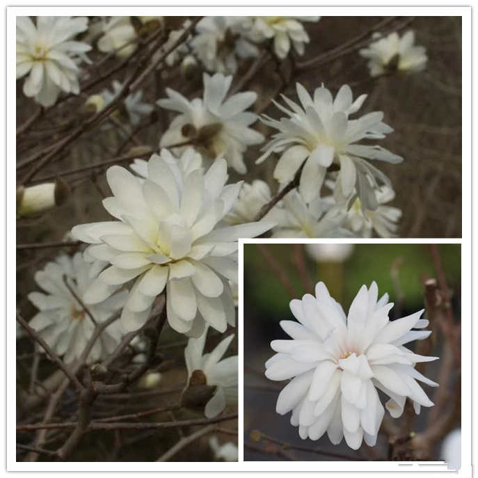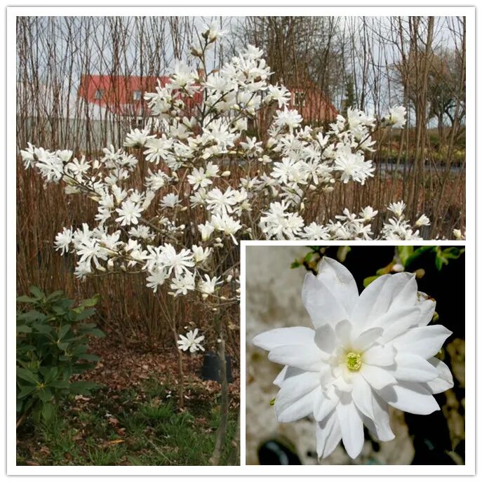 Magnolia “Nymphaea” plants are 4.5-6 m tall, with narrow and numerous petals (Sometimes up to 36) , looks like a water lily, with pure white flower color.