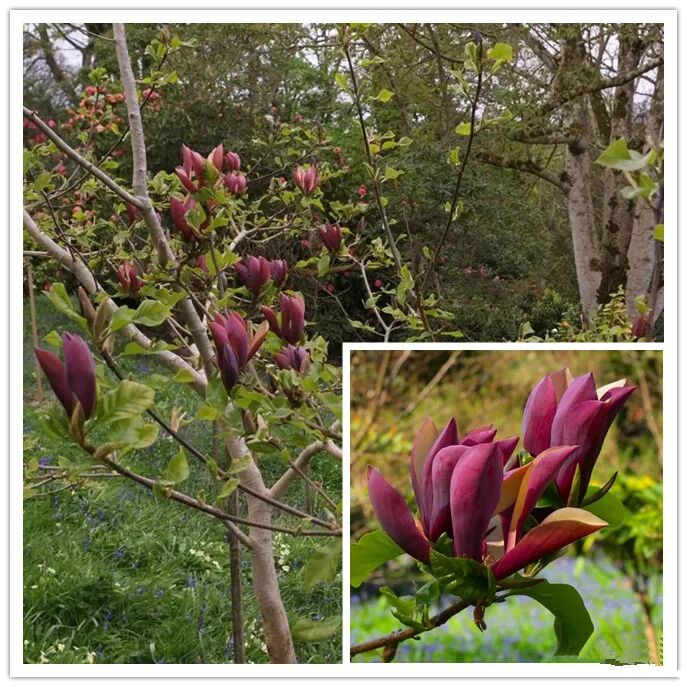 Magnolia “Nigra” plants are 2.5-3.5 m tall, with tulip-shaped flowers and large flowers (~ 20 cm +) The petals are narrow and deep red purple (milky white to lavender inside) 。 “Nigra” begins to bloom in late spring (April-May) , it will also bloom intermittently in summer.