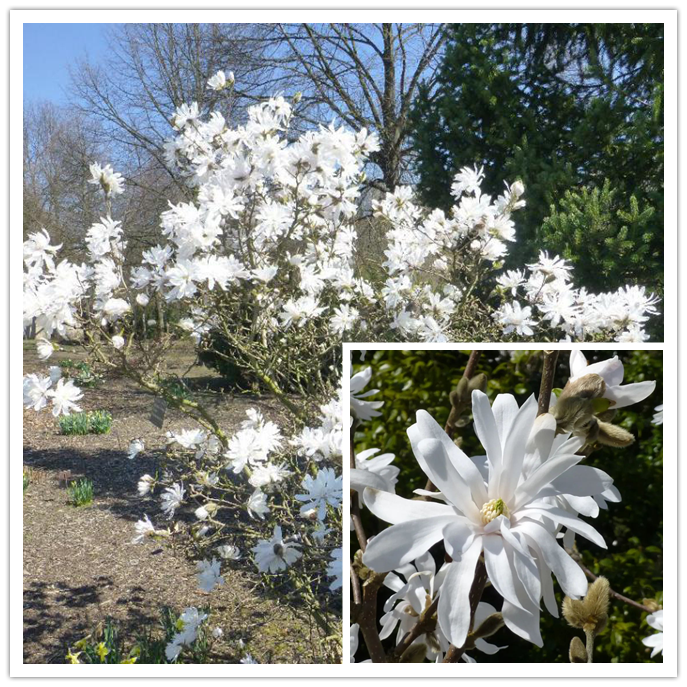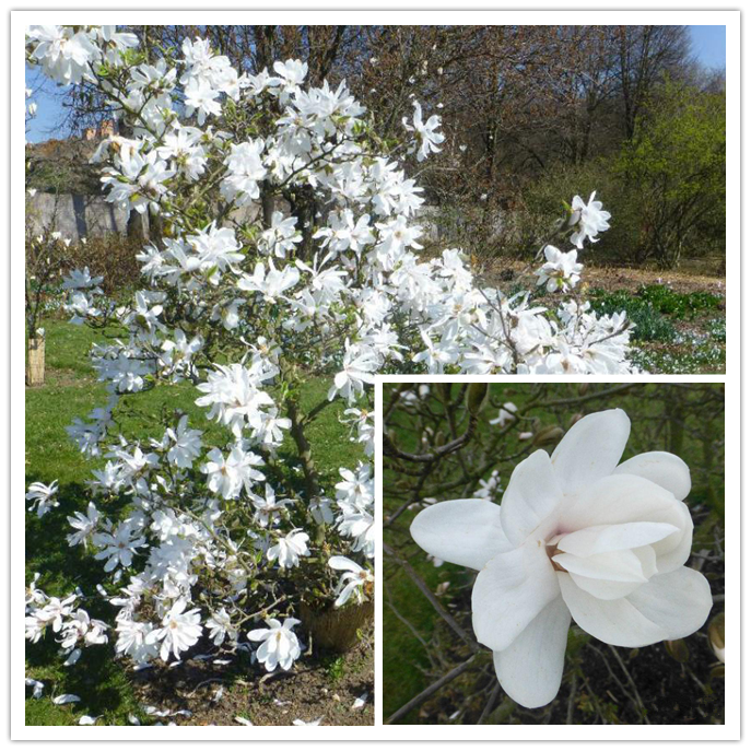 Magnolia “Royal Star” plants can reach 3 m in height, with 18-30 narrow petals and white flowers (buds pink to light pink) , fragrant.