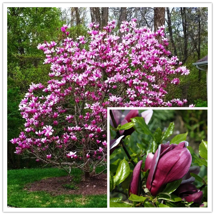 Magnolia “Betty” is a cross between “Nigra” and “Rose” (Plant height 3-4.5 m) , large cup-shaped flowers up to 20 cm in diameter with reddish-purple petals (white inside) 。 The flowering period is late and will not bloom until mid-April to mid-May.
