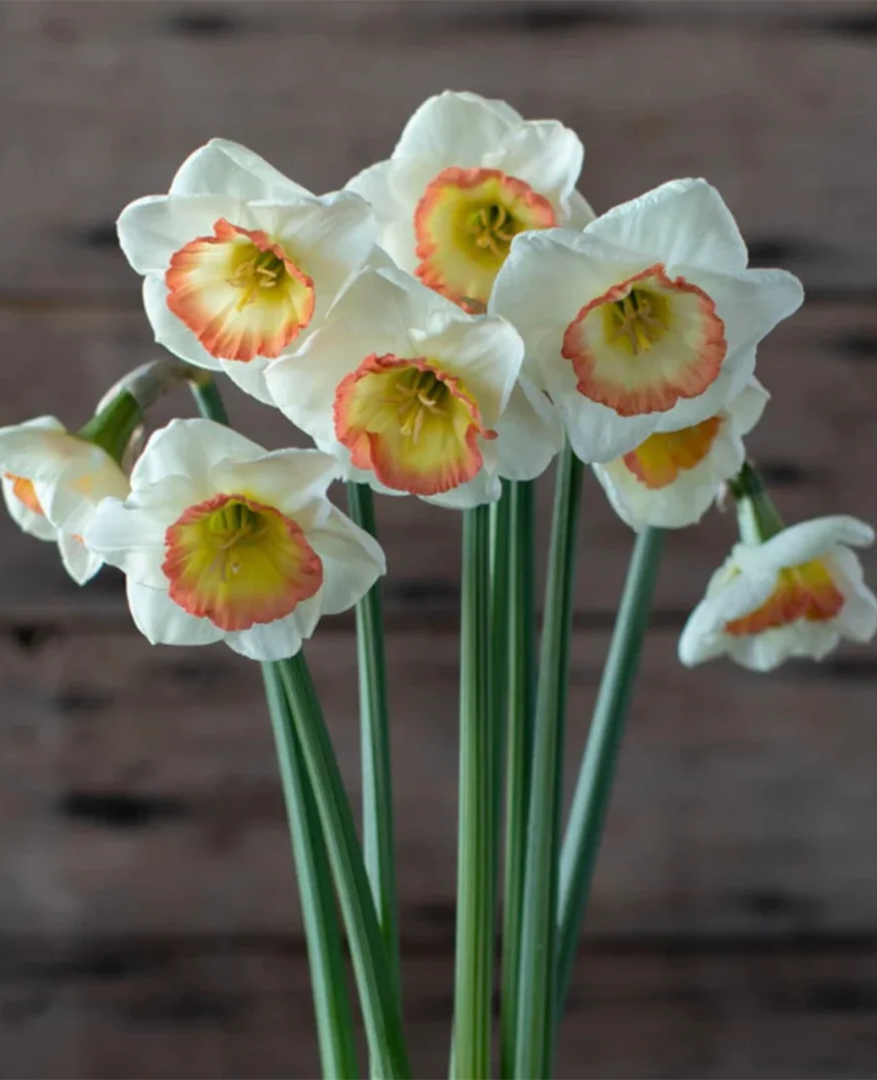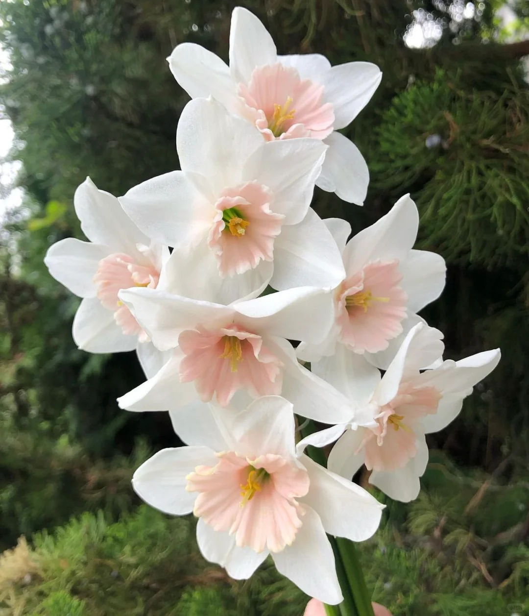 Finkur Jewelry is a multi-flowered narcissus with milky white petals and a light milky yellow corolla, which will be dyed with an intoxicating pink in the later stage.