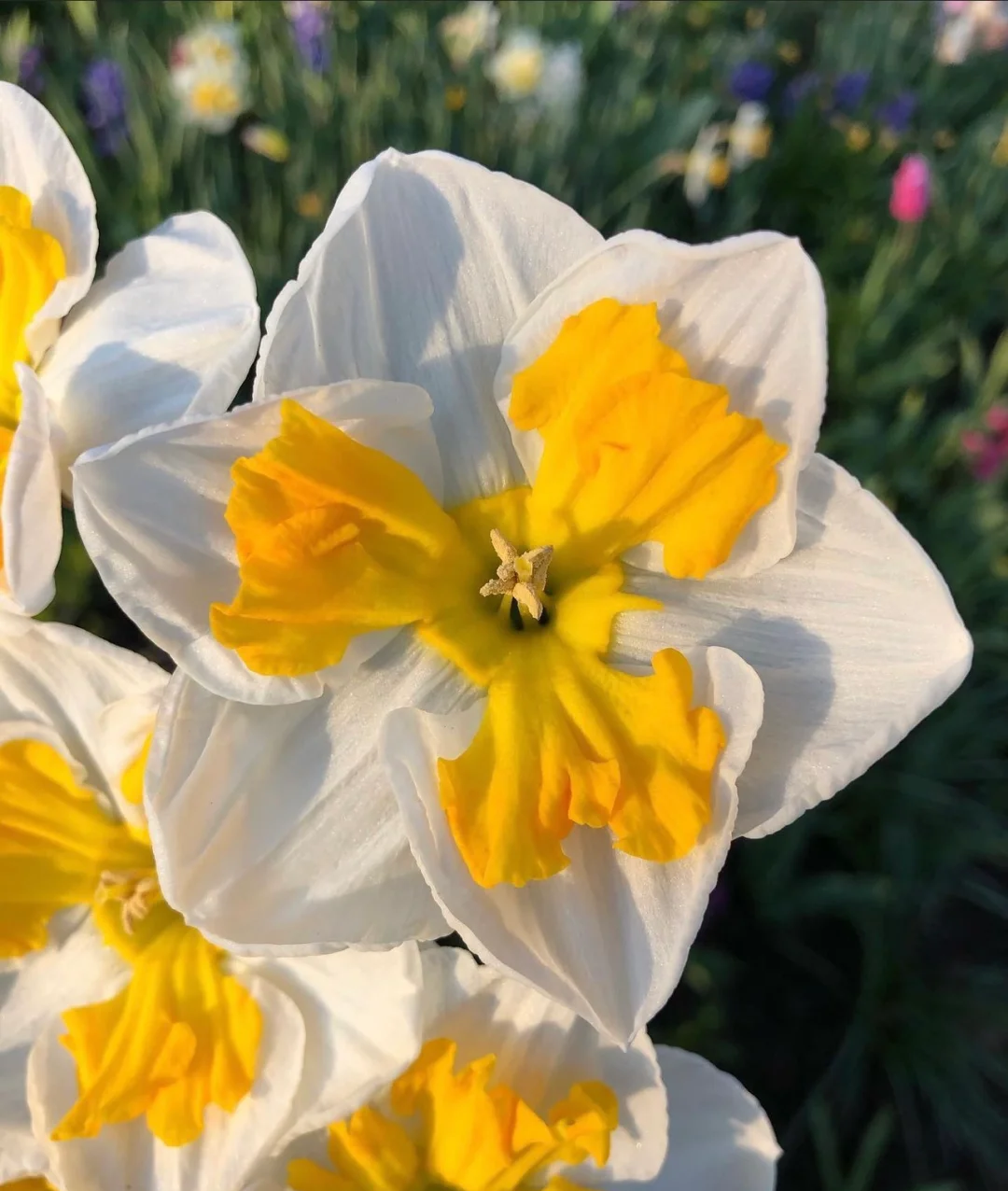 Tricle is a split-crowned narcissus with white petals, and the corolla split into three orange-yellow petals, like a spinning windmill.