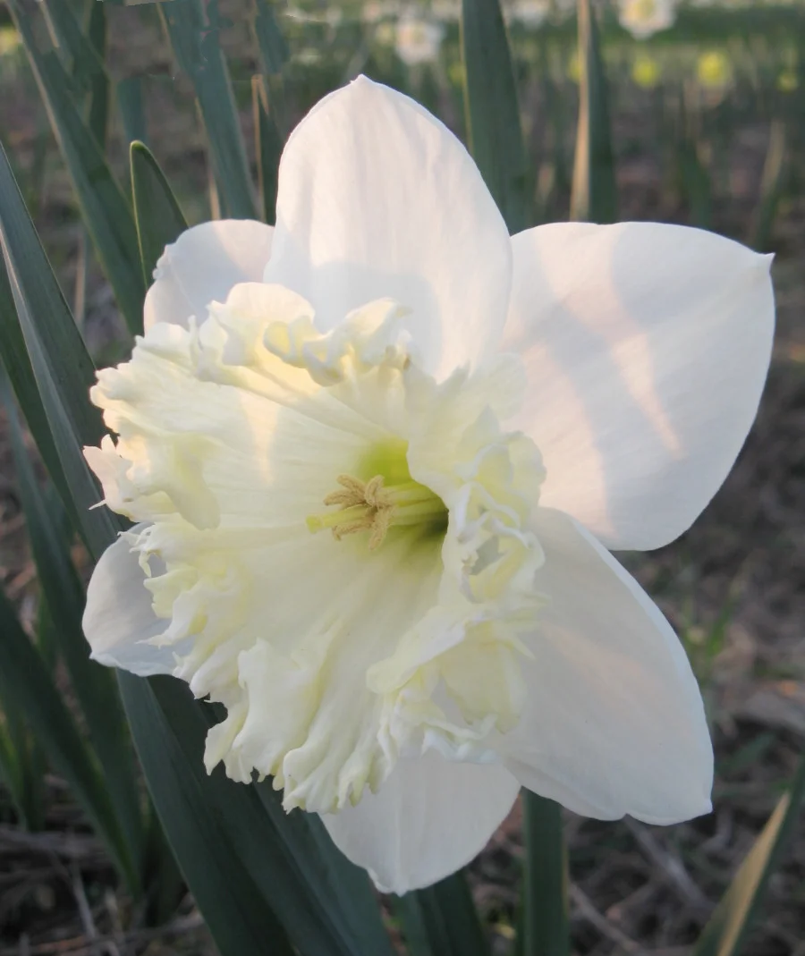 Wei Ya is a large-cup narcissus with pure white petals and toothed edge of the corolla (ever-changing) It is light yellow at first, and gradually turns into pure white later.