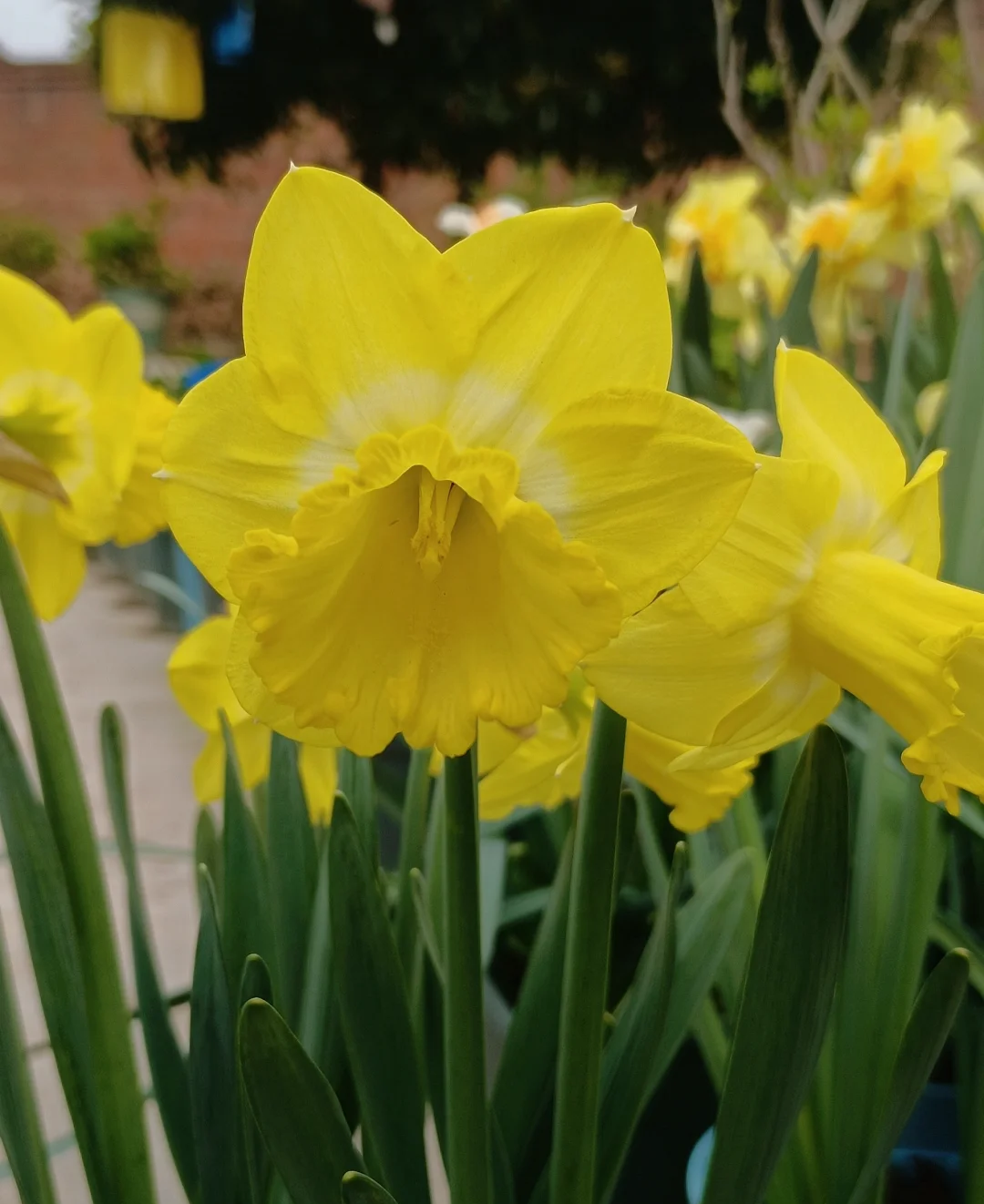 Glamour Golden Record is a cracked-crowned narcissus with yellow petals and corolla and a huge corolla (completely keeps the petals behind) With ruffled edges, split into five petals.