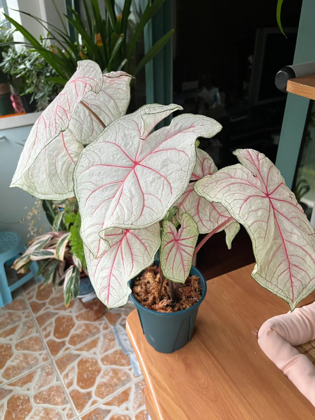 AKA Thai Beauty, Dark green veins are clearly visible, With pink leaf color, the leaves are very transparent, and the whole leaf looks like the wings of a butterfly.