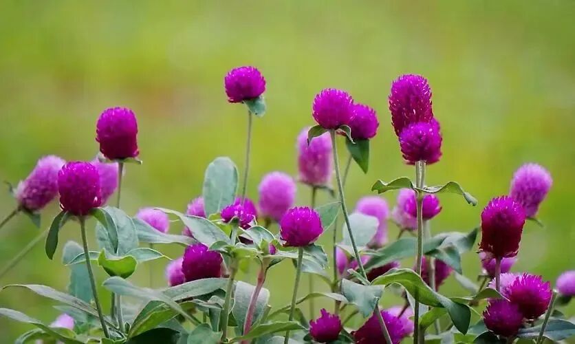 Outstanding features: Flowers also have the texture of dried flowers, shaped like chubby balls, There are colors such as fuchsia, lavender and white. Like cockscomosia, it has its own silky luster, and The flowers do not fade after drying and remain unchanged for a long time, hence the name Qianrihong.