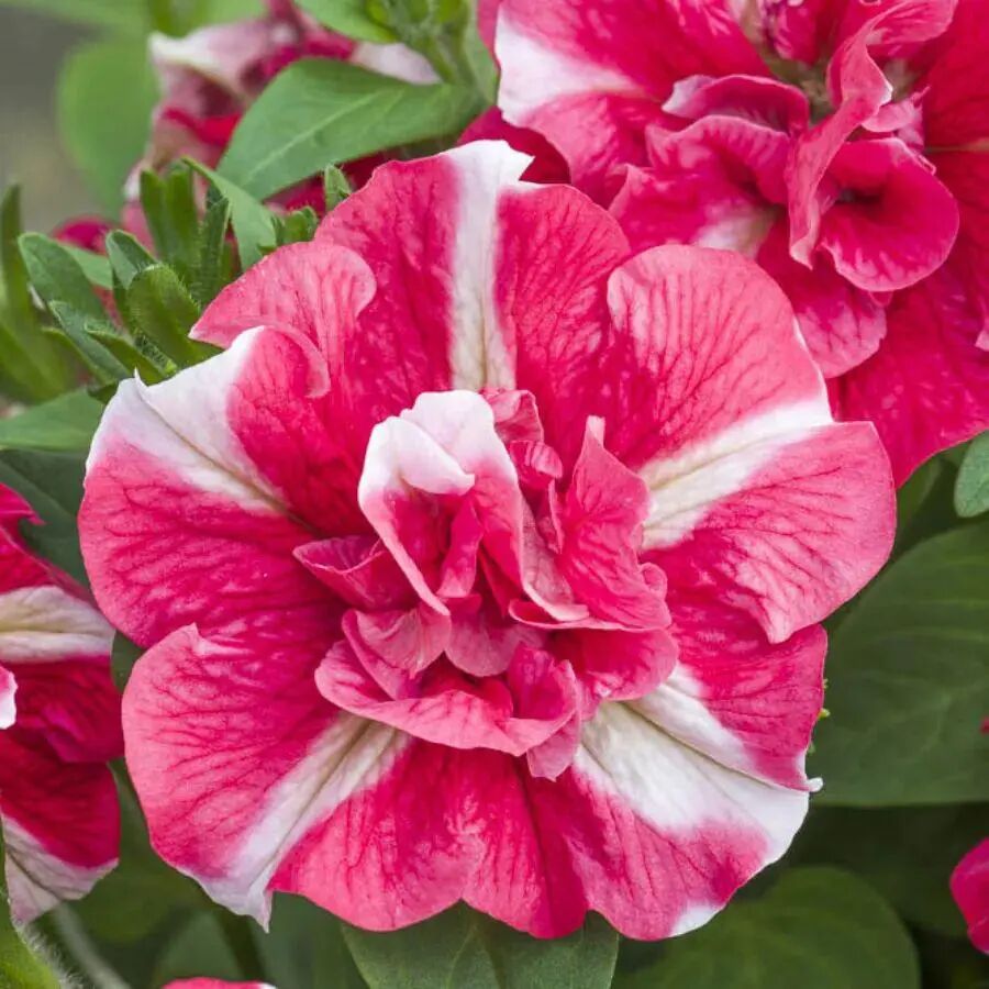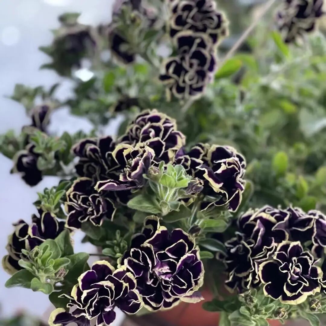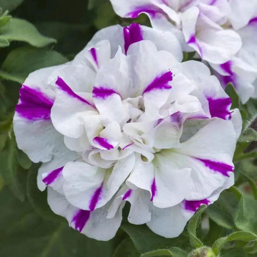 Priscilla is a double petunia variety with white flowers and purple lines on the background. Purple and white inlay, very unique color!