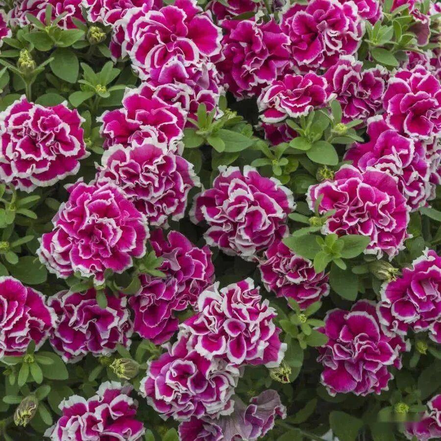 Red Crystal is a large-flowered petunia species with much larger flowers than common petunias (Flower diameter 6-8 cm) , double-petaled flowers are round and full, And with a beauty tip, Layers resemble peonies; Dark pink petals, with a layer of white lace on the edge, which is particularly beautiful in white and powder.