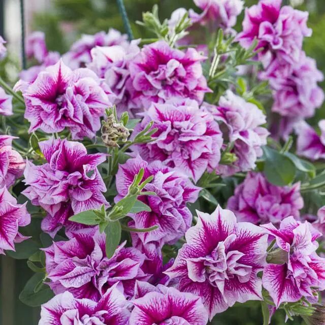 Daisy Rosa was like ” An upgraded version of “Green Snare Drum”, It is a double petunia variety with smaller flowers than Helena, also deep fuchsia centers with a layer of green lace 。