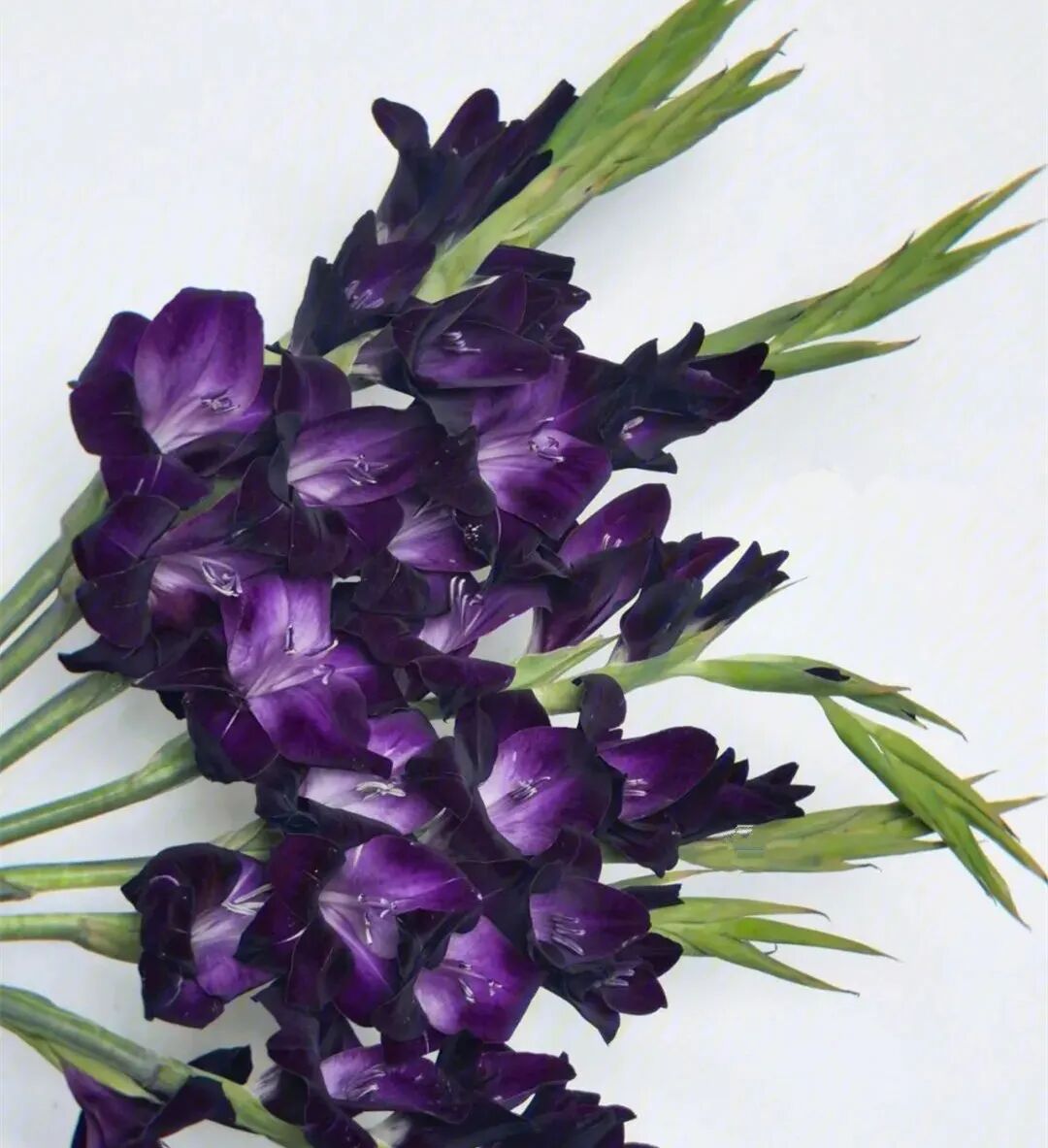 The flower color of Black Warrior Gladiolus is actually dark purple (the middle of the petals is exposed white), and the buds are dark and nearly pure black.