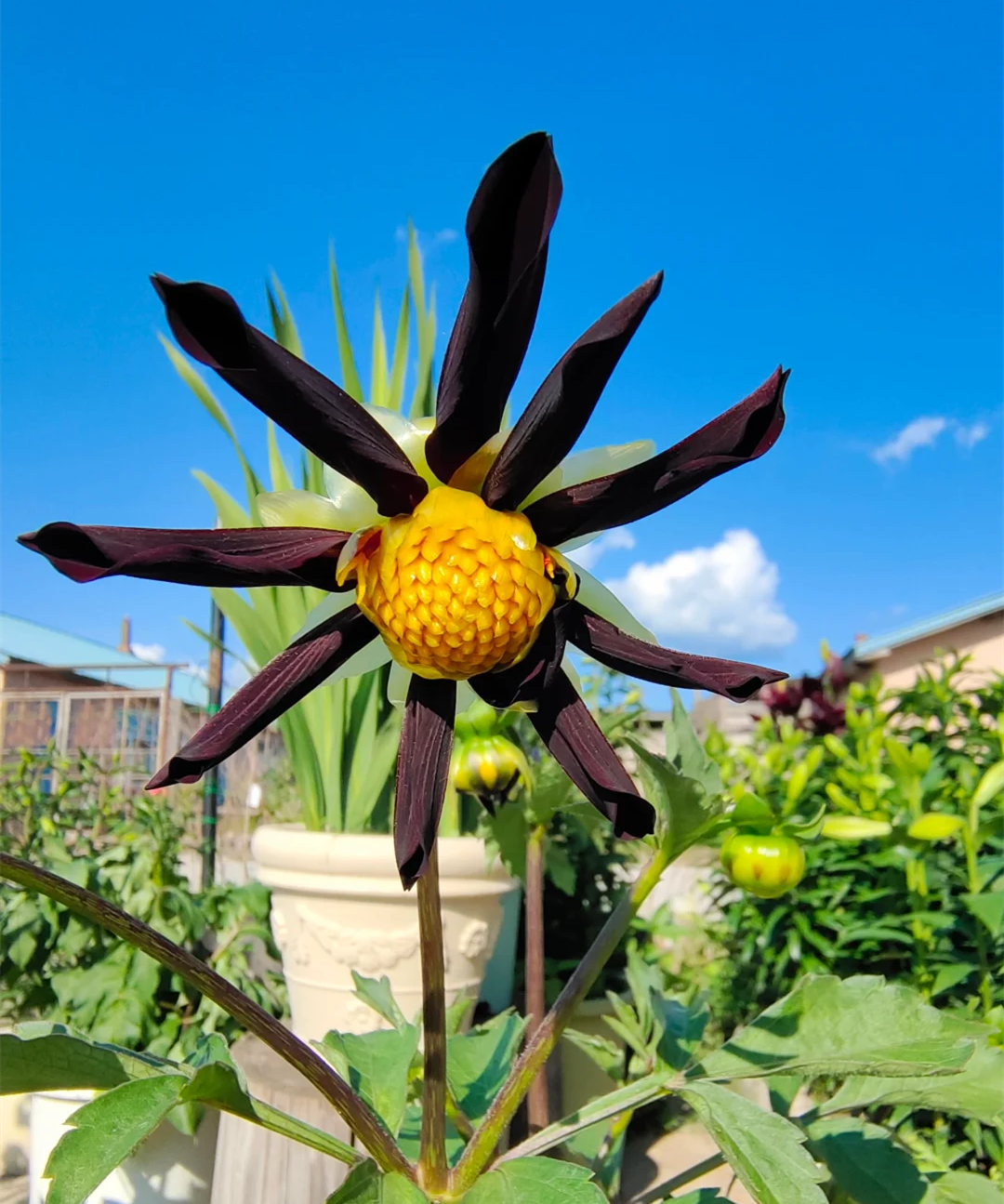 Compared with other varieties of dahlia, obsidian dahlia is a little less charming, but a little more charming Spooky, personality and cool. Its petals are thin and curly, dark red to black, and with large yellow stamens, it looks like a dark windmill.