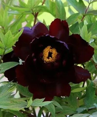 Ink Purple Lotus Peony The flower color is dark purple (slightly black), and the petals are round in shape, thick and shiny in texture.