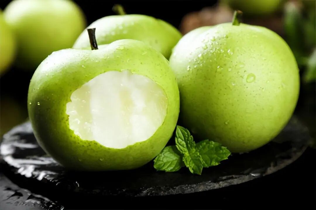 The scientific name Jade, formerly known as 5-18, is a hybrid between Xizilu and Cuiguan. The fruit is round, with a single fruit weight of about 230 grams. The peel is light green, the fruit rust is less, the fruit spot is very small, the flesh is white, the flesh is tender, the slag is melted, the core is small and juicy, and the taste is crisp and sweet.