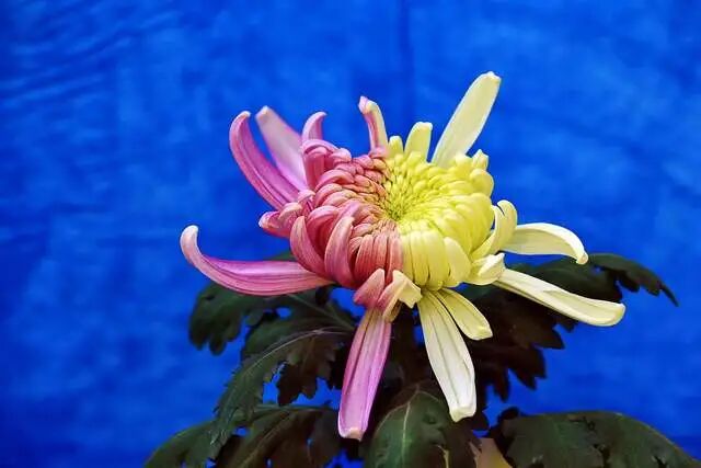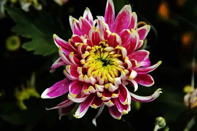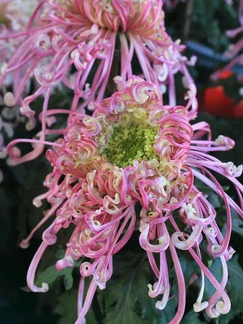 “Green clothes and red clothes”, a traditional Chinese chrysanthemum variety, has tongue-shaped flowers with flat petals and peony type. The flowers are rich in color, with yellow-green at the front end of the petals, white in the middle and red at the tail. It is a rare multicolor variety with one flower.