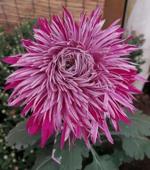 The flower color of Mane Buddha Dust is sandalwood, and its petals are thin tubular like silk (with tiny spoon hooks at the ends of the petals), either upright or floating, and look furry. Mane Buddha dust belongs to a precious variety of famous chrysanthemums, and it is also a treasure on exhibition.