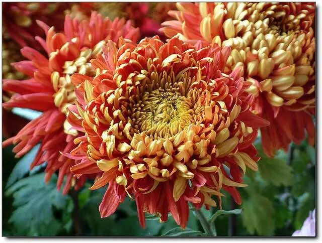 Mandarin duck chrysanthemum is a kind of precious chrysanthemum. Its peculiarity is that its flowers are divided into red and yellow (one side is red and the other side is yellow), and its petals are slightly upturned, dense and slender.