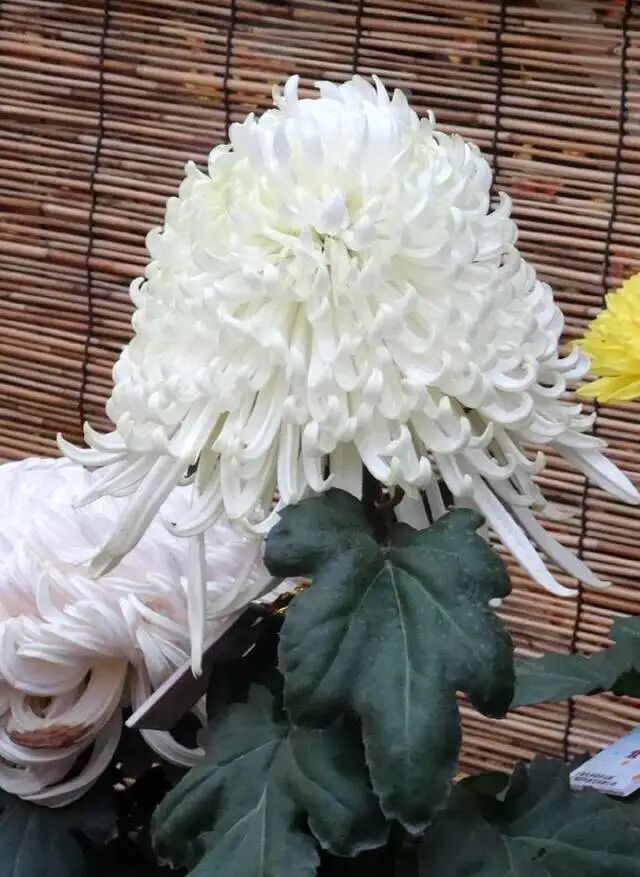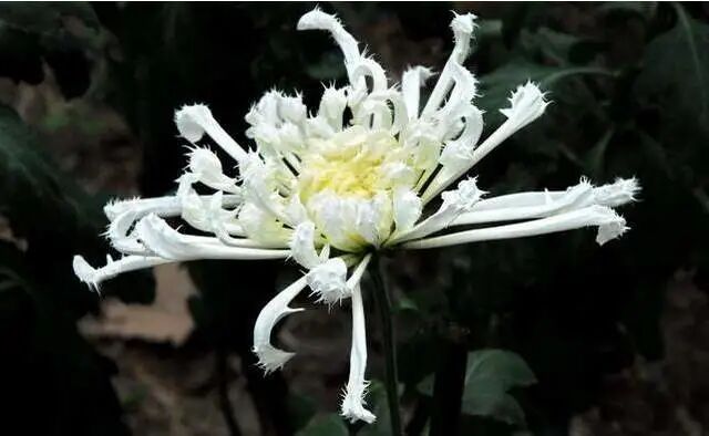 White burr, tongue-shaped flower with multiple rounds of straight tube petals, flat feet, white flower, yellow center, whole flower white as fat jade, noble and elegant! This variety also has a yellow version, named “Yellow Burr”.