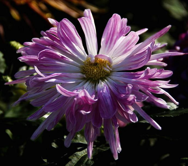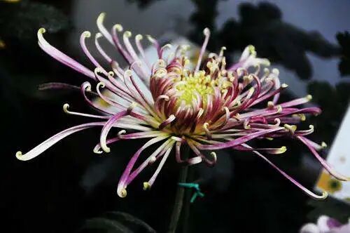 The petals of Ganoderma lucidum are slender, the color of the inner petals is light yellow, and the color of the peripheral petals is lavender. It is a precious chrysanthemum variety.
