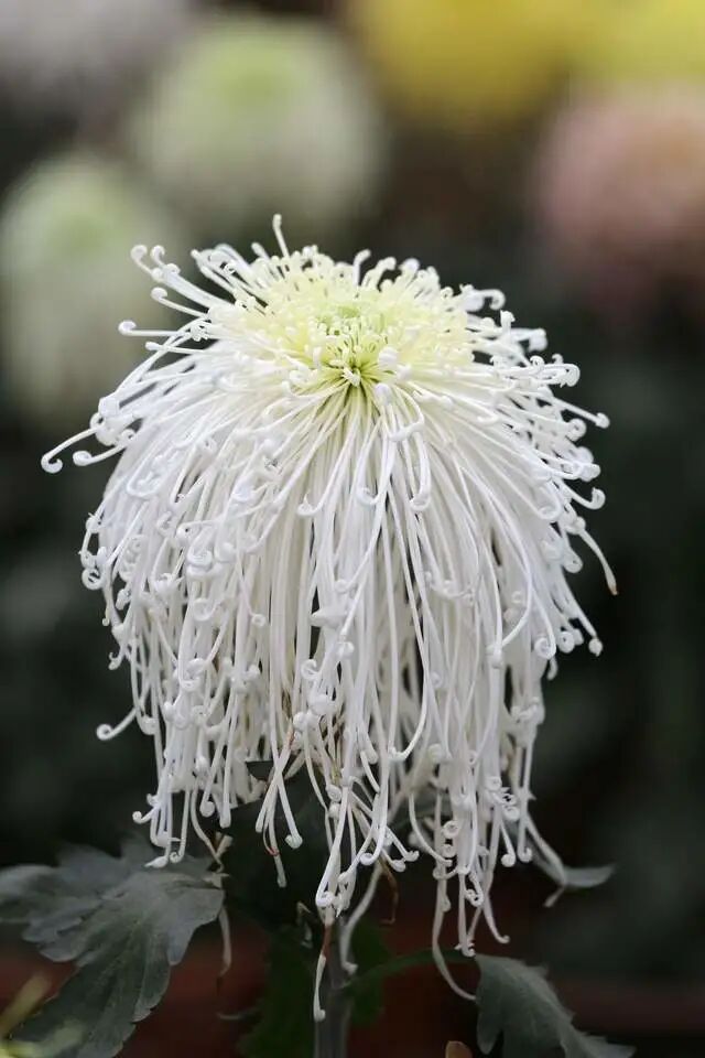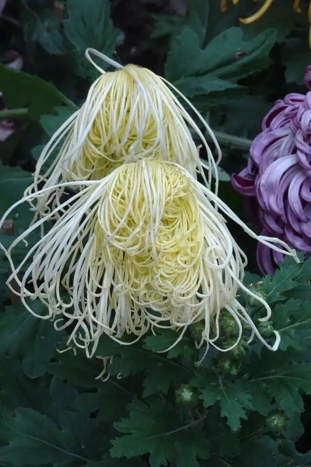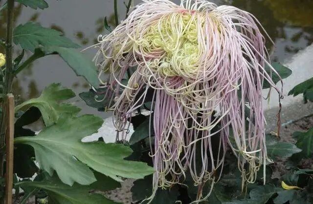 “Shizhang Pearl Curtain”, also known as “Shizhang Hanging Curtain”, is the thinnest and longest petals among traditional famous chrysanthemums. The petals are thin tubes or needle thin tube petals and tube spoon petals. The peripheral tube petals are extremely long, drooping or long floating. There are very small spoon hooks, large spoon hooks and hook-shaped at the apex. The flowers bloom like a waterfall, white or pink-white, slightly light yellow-green, and the flowers bloom like a waterfall.