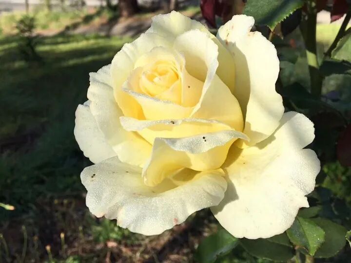 Flower diameter 10 cm, double petals (100 petals), milky yellow, strong fragrance, repeated blooming in many seasons. The plant height is about 150 cm.