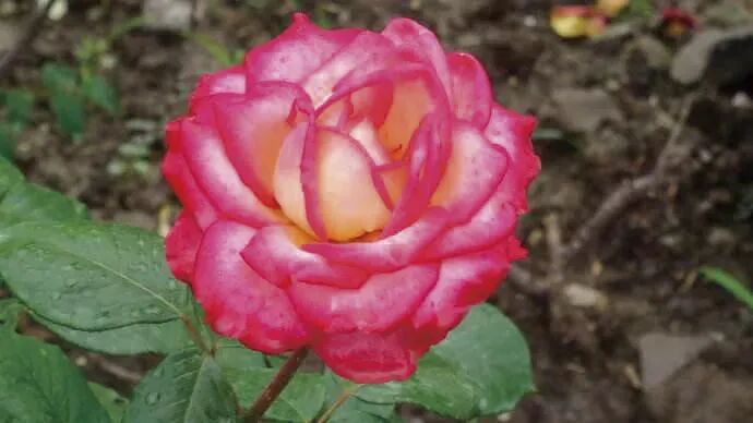 The flower diameter is 13-16 cm, double petals (petals), red and yellow mixed colors, strong fragrance, repeated flowering in many seasons.