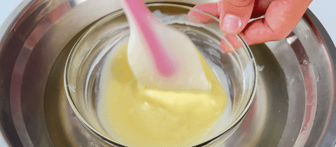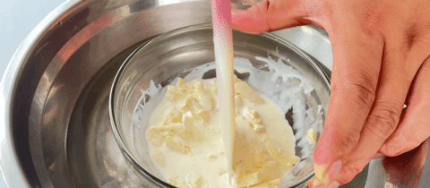 1. Gelatine is soaked in cold water in advance and melted with whipping cream;