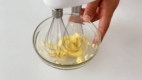 2. Add granulated sugar and continue to beat until granulated sugar melts;