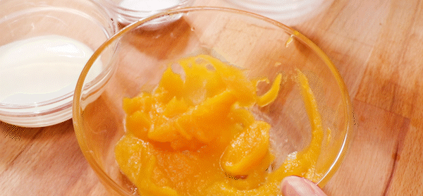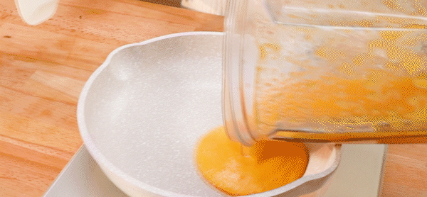 5. Mix caster sugar, whipping cream, milk and concentrated pumpkin puree evenly, and heat them together to at least 40 degrees.