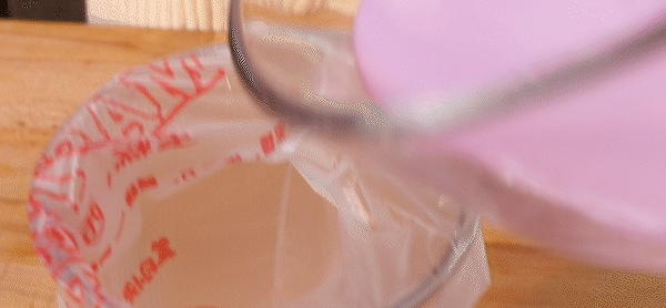 7. After the soaked gelatine tablets are drained, melt them into gelatine liquid by heating them with insulated water or microwave oven for 10 seconds.