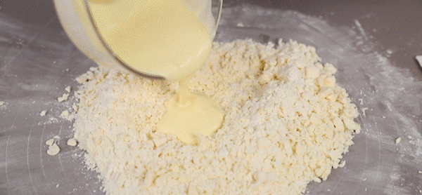 5. Dig a small hole in the dough and slowly pour in the prepared liquid (instead of pouring it all at once, adjust it according to the actual state of the dough, pour it in batches and mix evenly until the dough can form a piece!)