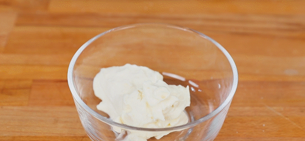 2. Put sour cream, a few drops of vanilla extract, and a whole egg into a bowl, stir well, and set aside