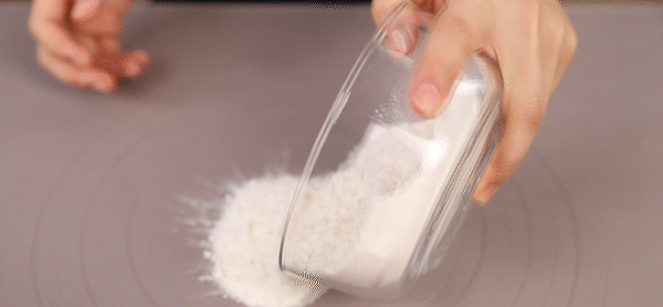 3. Put medium gluten flour, sugar, baking powder and salt together and mix well.