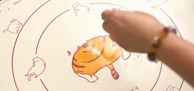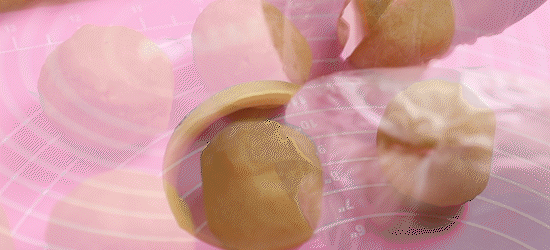3. Sprinkle dry powder on the kneading mat, sort out the shape and put it into a 4-inch chiffon mold.